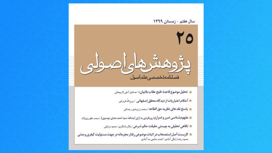 این مقاله در فصلنامه دانش اصول فقه (علمی – پژوهشی) سال هفتم، شماره۲۵، زمستان ۱۳۹۹ صفحات ۹۵ تا ۱۱۶ با همکاری جناب آقای بلال شاکری استاد سطح عالی حوزه علمیه خراسان منتشر شده است.